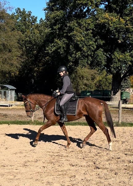 Verkaufe deutsche Sportstute – ideal für Dressur! Zum Verkauf steht eine elegante und talentierte deutsche Sportstute, geboren im Jahr 2021. Die Fuchsstute besticht durch ihr ansprechendes Erscheinungsbild und ihre hervorragenden Bewegungen. Mit einem aktuellen Stockmaß von 167 cm bietet sie die perfekte Größe für ambitionierte Reiterinnen. Aufgrund ihrer feinen Statur ehr ein Damenreitpferd (Reiterin im Bild1,66m groß) Sie ist bestens im Dressursport ausgebildet und zeigt bereits vielversprechende Ansätze für die Zukunft. Die Stute ist gesund, gut gepflegt und besitzt eine freundliche, lernbereite Natur. Bei Interesse stehe ich gerne für weitere Informationen und einen Besichtigungstermin zur Verfügung. Aufgrund des sonst anstehenden Reittourismus, wird pro probereiten 50€ Gebühr bezogen, die beim Verkauf natürlich verrechnet werden!