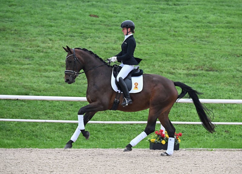 Hier geht's zur Kollektion und Online-Registrierung: https://auktion.pzvbw.de/auctions MwSt. 0 % Großrahmige Stute mit viel Präsenz! Mit sorgfältiger Grundausbildung, bester Einstellung zum Reiter und dem entsprechenden Reitkomfort ausgestattet. A large-framed mare with a great presence! She has undergone thorough basic training, is well-disposed towards the rider, and is comfortable to ride.