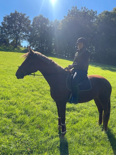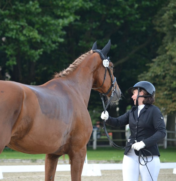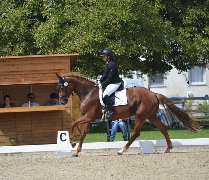Ganz tolle, große, aber kompakte Stute von Scolari x Daily Deal nur wegen Bestandsverkleinerung direkt aus Züchterhand zu verkaufen! Sie ist seit März unter dem Sattel und zeigt sich super schwungvoll, sehr gelehrig und super brav und abgeklärt unter dem Sattel, egal ob in der Halle oder auf dem Platz, im Gelände oder auch auswärts. Sie lernt jeden Tag dazu und hat mächtig Muskulatur, Kraft und Ausdruck aufgebaut! Unter dem Sattel immer mit Go und Eifer und mega kopfklar bei der Sache! Natürlich ist sie noch in den Anfängen ihrer Karriere, hat aber bereits allererste Turnierluft geschnuppert. Verladen, fremde Umgebung, fremde Pferde: Natürlich noch altersentsprechend aufregend, aber alles völligst problemlos und brav! Eine tolle Stute, von der wir denken, dass sie eine Zukunft im großen Viereck haben wird. Sie gibt dem Reiter einfach ein mega Gefühl und macht jeden Tag wirklich großen Spaß!!! Auf der Elitestutenschau erhielt sie 2024 die Staatsprämienanwartschaft und ihre tollen GGA und ihr sehr aktives Hinterbein wurden herausgestellt. Ein besseres Pferd, das wirklich jeden Tag Freude bereitet, die wir in fördernde Hände verkaufen möchten! Bei uns geboren und behütet aufgewachsen. Sie ist in 2025 geröngt obB. Zähne sind gemacht, eingetragen und geimpft. Soleil ist sozial aufgewachsen und verträglich. Sie ist nur vorne beschlagen und steht sehr korrekt. Da es nun auf den Winter zugeht, ich eigentlich Springreiter bin und einige weitere junge Pferde in den Startlöchern stehen, sind wir im fairen Rahmen verhandlungsbereit. Ich reite und mag sie wirklich unfassbar gerne und finde sie toll!, deswegen auf gar keinen Fall ein Notverkauf! Sie wird nur in passende, fördernde, jungpferdeerfahrene Hände verkauft. Weitere Videos auf Anfrage.