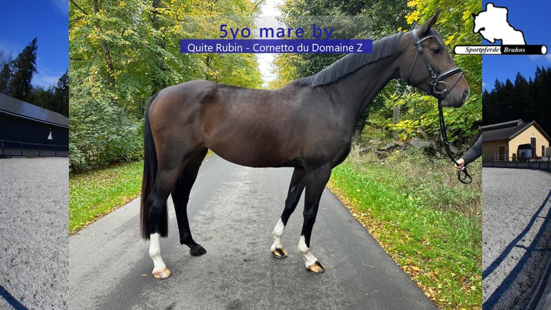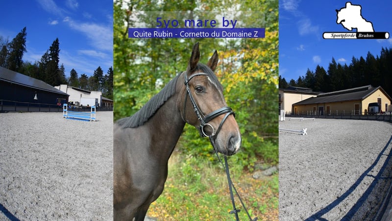 Wir bieten hier eine turnierfertige und platzierte 5jährige Stute zum weiterentwickeln und Spaß haben. Diese junge Dame ist eine kompakte edle und blütige Stute, die erst am Anfang ihrer Turnierkarriere und ihrer Ausbildung steht. Sie zeigt sich vorsichtig und leichtfüßig am Sprung und im Parcours. Ihr Pedigree gestaltet sich springbetont und leistungsorientiert, was ihr Talent genetisch bestätigt und sie auch für eine eventuelle züchterische Nutzung interessant macht.