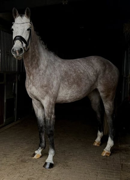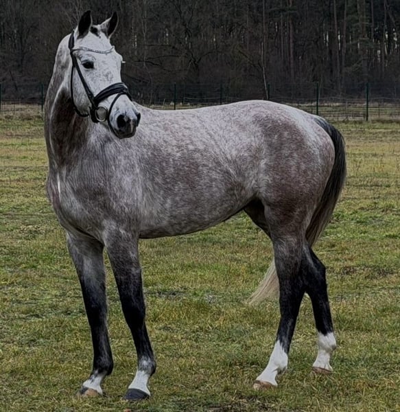 Verkaufe deutsches Sportpferd – elegante Apfelschimmel-Stute Zum Verkauf steht eine wunderschöne deutsche Sportpferd-Stute, geboren im Jahr 2021. Mit ihrem hübschen Gesicht zieht sie alle Blicke auf sich. Sie verfügt über ein Stockmaß von 167 cm und ist somit ideal für ambitionierte Reiterinnen und Reiter, die ein sportliches und elegantes Pferd suchen. Sie ist talentiert im Springen und zeigt bereits viel Potenzial in diesem Bereich. Die Stute ist freundlich, lernwillig und schonend ausgebildet, was sie zu einem vielversprechenden Partner für den Turniersport macht. Sie ist sehr anständig im Umgang und leicht zu reiten. Kleine Hüpfer über ein cavaletti machen ihr riesig Spaß. Im Freispringen entfaltet sie sich super und man kann erahnen was in ihr steckt. Sie stammt direkt vom Züchter und wird im Auftrag verkauft. Sie wurde regelmäßig entwurmt und dem Schmied vorgestellt. Bei Interesse oder weiteren Fragen stehe ich gerne zur Verfügung. Ein Besichtigungstermin ist nach Vereinbarung möglich. Bitte rufen Sie nicht anonym an, da dann kein Rückruf gewährleistet werden kann.