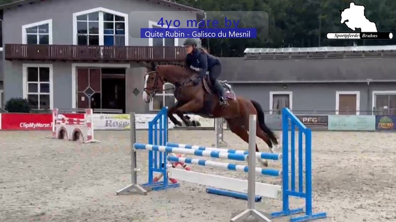 We are offering a 4-year-old mare with potential, who will soon be ready for her first competitions. In her training, she demonstrates age-appropriate balance and is easy to ride. Over jumps, she shows great caution and is equipped with a lot of potential. Genetically, she is also interesting, as she comes from a high-performance lineage with a focus on competitive jumping.