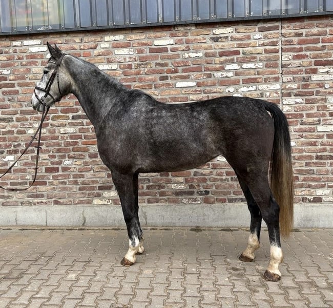 This mare is very well-behaved and rideable under saddle, currently tackling her first jumps with a rider. She is uncomplicated, easy to handle, and very gentle and friendly. She is barefoot and comes directly from the breeder. She enjoys hacking out and is currently still living in a herd.