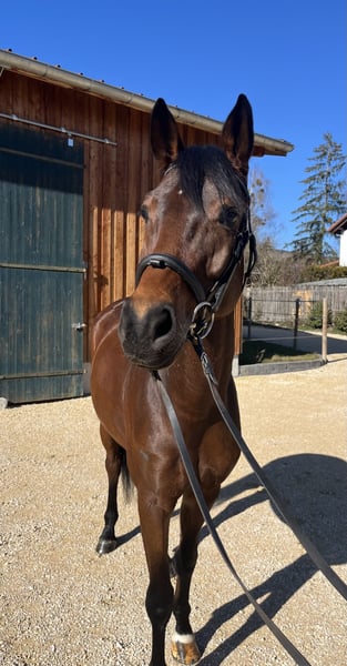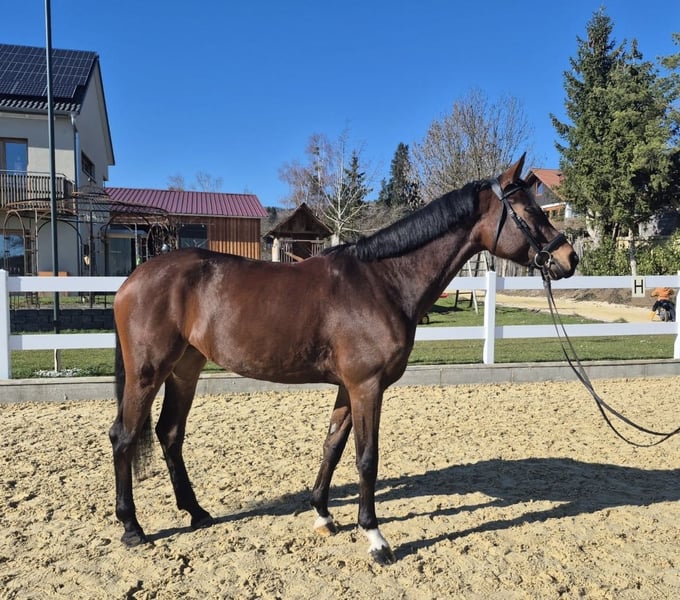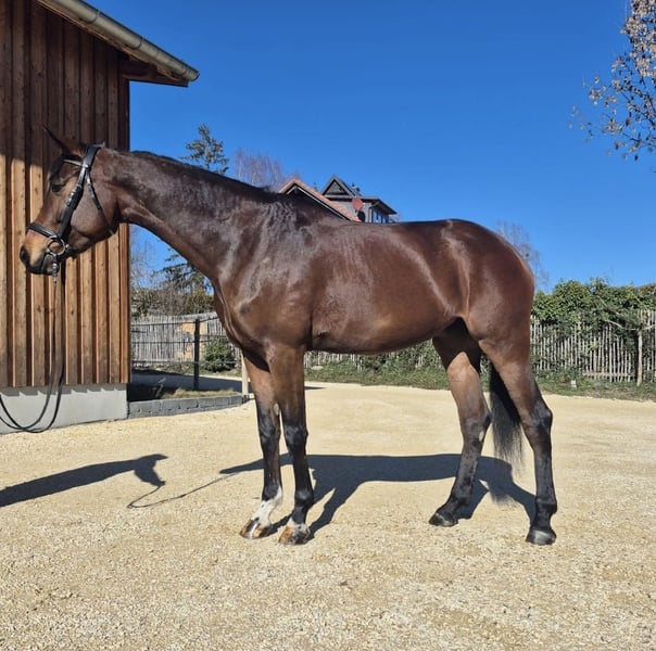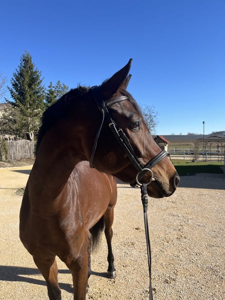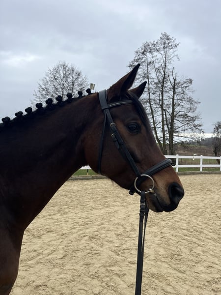 Deutsches Sportpferd – Dunkelbraune Dressurstute, geb. 2021 Zum Verkauf steht eine vielversprechende deutsche Sportpferdestute, geboren im Jahr 2021. Die elegante Dunkelbraune besticht durch ihre ansprechende Erscheinung und ihre vielversprechende Grundausbildung im Dressursport. Sie wurde roh direkt vom Züchter Birkhof gekauft und stammt vom vielversprechenden Hengst „Bohemian“. Sie ist eine gut gerittene, sehr talentierte Nachwuchsstute mit einem angenehmen Temperament und einer ausgeprägten Lernbereitschaft. Dank ihrer soliden Grundausbildung eignet sie sich ideal für ambitionierte Nachwuchsreiter oder Reiterinnen, die auf der Suche nach einem zuverlässigen Partner für den Dressursport sind. Diese junge Stute verfügt über eine harmonische Grundausstattung, drei sehr gute Grundgangarten, ist gesund, bewegungsstark und zeigt bereits erste Ansätze in der Dressur. Sie ist gut sozialisiert, freundlich im Umgang und lässt sich angenehm reiten. Eine große, einwandfreie Ankaufsuntersuchung inklusive Röntgenbilder aus Oktober 2024 ist vorhanden. Sie ist lückenlos geimpft. Boney M ist bereit für die Turniersaison. Erste Erfahrungen als Begleitpferd hat sie schon gesammelt. Sie ist sehr kinderlieb und durch das rege Hofleben abgehärtet. Auch im Gelände ist Sie sehr zuverlässig und sicher. Boney M ist eine prämierte, eingetragene Zuchtstute. Ein echtes Potenzialpferd für den gehobenen Dressursport, das noch viel Entwicklungspotenzial bietet. Für weitere Informationen oder einen Besichtigungstermin stehe ich gerne zur Verfügung.