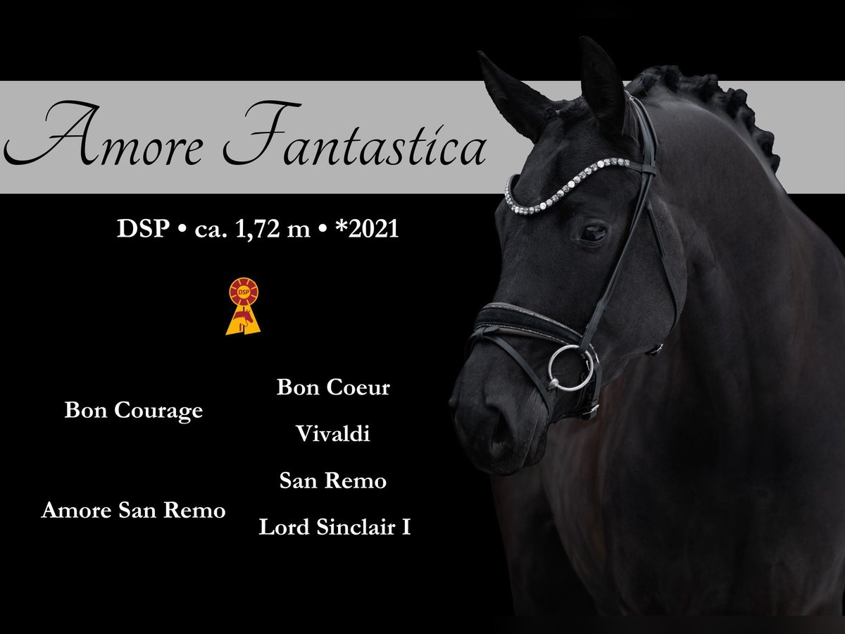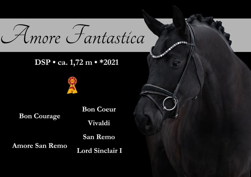 Dear Interested Parties, Please send me a WhatsApp message to arrange a viewing or trial ride. For further questions, I am available during the day via WhatsApp, and you can reach me best by phone between 4 PM and 7 PM. I look forward to hearing from you. www.angelina-devittorio.de ⭐️Amore Fantastica⭐️ Age: 5 years (2021) Height: approximately 16.1 hh Pedigree: Bon Courage x Training level: Dressage horse class A Current X-rays available For sale is a highly talented, stunning, and impressive daughter of Bon Courage with a heart of gold! This exceptionally beautiful mare impresses not only with her striking appearance but also with her talent and qualities in all three gaits. She features a very good uphill canter, an excellent walk, and a superb trot mechanics with a strong hind leg and plenty of impulsion. Coming directly from the breeder, she has been gently and horse-appropriate trained and promoted. With her calm, uncomplicated nature, her always honest character, and her strong will to please, she is a true dream horse that delights both in daily work and in handling. Amore Fantastica is absolutely suitable for amateurs, suitable for anyone starting from A-level, and with some young horse experience. Very well-behaved, straightforward, and mentally clear, making her very pleasant to ride. Due to a minimal X-ray finding (a tightly spaced vertebra in the back), the mare is being sold at a below-market price. She is clinically perfect with no issues—all horses from this dam line are highly successful in class S and above! Also very interesting for breeding due to the proven dam line. ⚜️ Phone: 0171-3438949 ⚜️ Email: a.devittorio@web.de ⚜️ https://www.ehorses.de/angelinadevittorio Facebook and Instagram: Angelina De Vittorio