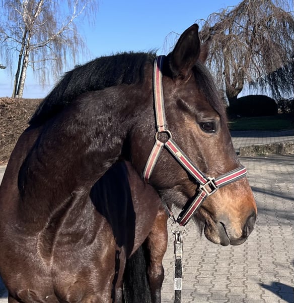 Suse ist eine sehr hübsche dunkelbraune und menschenbezogene Stute. Sie wurde schonend angeritten und sehr gezielt auf Turnieren in Dressur-, Spring- und Geländepferdeprüfungen eingesetzt. Suse errang sich durch beständig gute Leistungen den Namenszusatz FBW und konnte sich vergangenes Jahr für das BuCha qualifizieren. Sie ist sehr artig im Umgang, geländesicher, schmiede- und verladefromm, ekzemfrei und gesund, sie wird aus Zeitgründen (Baby) nur in allerbeste Hände abgegeben. „Suse“ ist ein vergnügtes Jungpferd welches ein Lachen aufs Gesicht zaubert und unkompliziert zu reiten ist, dennoch ist sie aufgrund des jungen Alters noch nicht voll erfahren und muss an neue Aufgaben behutsam herangeführt werden. Sie kann sich hervorragend als Pony-Umsteiger- oder Amazonenpferd eignen, verträgt aber keinen gänzlich unerfahrenen Reitet. Weitere Videos gerne auf Anfrage. Das Pferd kann nach Absprache Probe geritten werden, dafür wird eine Gebühr in Höhe von €30,- erhoben welche beim Kauf selbstverständlich verrechnet wird.