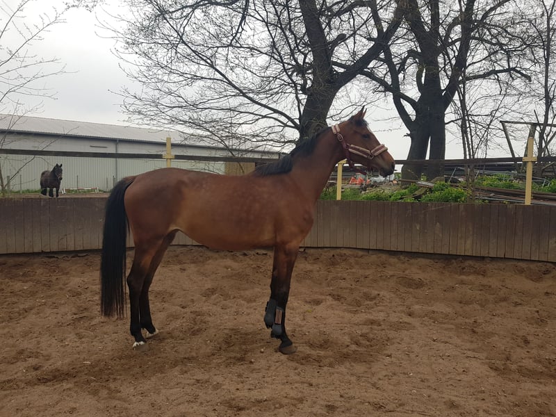 Selbst gezogene feine Stute vom Holsteiner Casdorff aus einer Halbblutstute von Alabaster zur weiteren Ausbildung. Sie ist gesund, regemäßig geimpft (inkl. West Nil) und entwurmt alle 8 Wochen beim Schmied (barhuf) Zähne letztmalig in 2024 kontrolliert und beschliffen Sportlicher, leichter Typ kein Gewichtsträger Nach dem Anreiten aufgrund fehlenden Reiters nur wenig geritten (1x Woche Beritt) daher aktuell auch nicht gut bemuskelt Geht Schritt, Trab und Galopp In erfahrene fördernde Hände abzugeben. Endplatz mit Familienanschluss wünschenswert. Weiteres gern auf Anfrage. Laut neuen EU Recht noch folgender Satz; Der Verkauf erfolgt unter Ausschluss jeglicher Sachmängelhaftung. „Ich schließe jegliche Sachmangelhaftung aus, die Angaben sind ohne Gewährleistung. Die Haftung auf Schadenersatz wegen Verletzungen von Gesundheit, Körper oder Leben und grobfahrlässiger und oder vorsätzlicher Verletzungen meiner Pflichten als Verkäufer bleibt uneingeschränkt bzw. unberührt“ Aufgrund des neuen EU-Rechts gelten folgende Bedingungen: Bei diesem Verkauf handelt es sich um einen Kaufvertrag von Privat an Privat nach § 13 BGB. Der Verkauf erfolgt unter Ausschluss jeglicher Gewährleistung, Garantie und Rücknahme. Gemäß § 447 BGB gilt, das mit Übergabe an den Versand oder den Käufer die Gefahr auf den Körper übergeht. Laut dem neuen EU-Recht muss dieser Zusatz unter jedem Online-Verkauf stehen, ansonsten haftet der Verkäufer ein ganzes Jahr für die verkaufte Ware.