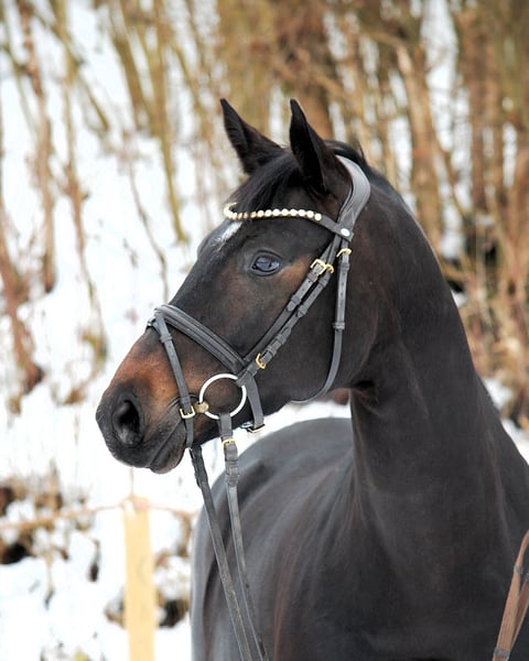 Princess ist eine 6jährige Stute mit einem wirklich bemerkenswerten Charakter. Sie ist nicht nur traumhaft schön, sondern in allen Belangen auch sehr brav. Selbst in ungewohnter Umgebung und bei viel Trubel nicht guckig und immer mutig genug, dass sie ohne Probleme überall dort hinläuft, wo ihr Reiter hin möchte. Sie ist in der Dressur bis zur Kl. L/M ausgebildet, war aber noch nicht auf dem Turnier. Sie beherrscht sicher Schulterherein, Schenkelweichen, Außengalopp, einfachen Galoppwechsel, Kurzkehrt usw. Fliegender Galoppwechsel noch nicht ganz sicher, wird aber immer besser. Im Galopp und Trab sehr schön zu sitzen, dabei mit sehr konstanter und feiner Anlehnung. Hand- und Bodenarbeit kennt sie auch schon. Sie geht allein und in der Gruppe ins Gelände und macht auch einen kleinen Sprung mit schöner Art. Regelmäßig entwurmt und geimpft. Aktuelle AKU mit 21 Röntgenbildern ohne Befund.