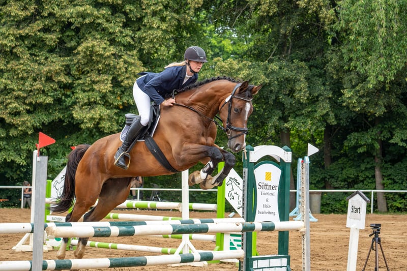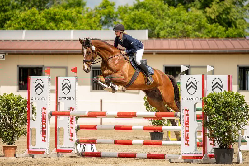 Zum Verkauf steht eine 6-jährige Stute, die durch ihre sehr gute Rittigkeit überzeugt. Sie ist angenehm leicht zu reiten und vermittelt dem Reiter jederzeit ein sicheres und komfortables Gefühl. Auch im Gelände zeigt sie sich brav und motiviert alleine wie auch in der Gruppe geht sie gerne voran. Im Sport konnte sie bereits Springpferdeprüfungen der Klassen A und L gewinnen und bringt damit viel Qualität und Vermögen für den Springsport mit. Im täglichen Umgang ist sie unkompliziert: Schmiede- und Verladefromm sowie insgesamt sehr angenehm im Handling. Eine tolle Stute für ambitionierte Reiter, die ein zuverlässiges und talentiertes Pferd suchen.