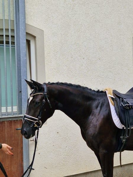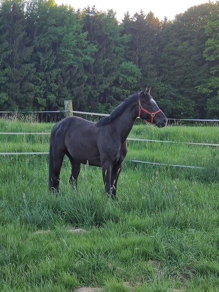 Unsere Lady ZacK ist eine elegante und sehr rittige Rappstute, herrlich zu reiten und sehr sitzbequem! Mit leichtfüßigen Bewegungen und elegantem Auftreten verfügt sie über 3 sehr gute GGA. Sie ist mit feinem Go ausgestattet und zeigt sich in der täglichen Arbeit nervenstark, ob im Umgang oder unter dem Sattel, ein wahrer Schatz. Im letzten Jahr hat sie eine sehr gute Leistungsprüfung mit 8,2 abgelegt und war unter den Dressurpferden somit das beste bewertete Pferd. Ihre Vollschwester Lady Sunshine war Vize-Landeschampionesse von Bayern und auch qualifiziert fürs Bundeschampionat. Evlt. auch für die Zucht sehr interessant, da die Stute aus dem sehr guten Love Story Stamm hervorgeht und es viele sehr gute Nachkommen gibt wie z.B. Floppy Disc, Faccia, Love Girl, Blue Hors Zee me Blue uvm. Die Mutter Lady Kelly war selbst Siegerstute und hat mit ihren Sohn Zick Zack und Lady Sunshine schon sehr gute Nachkommen hervorgebracht!