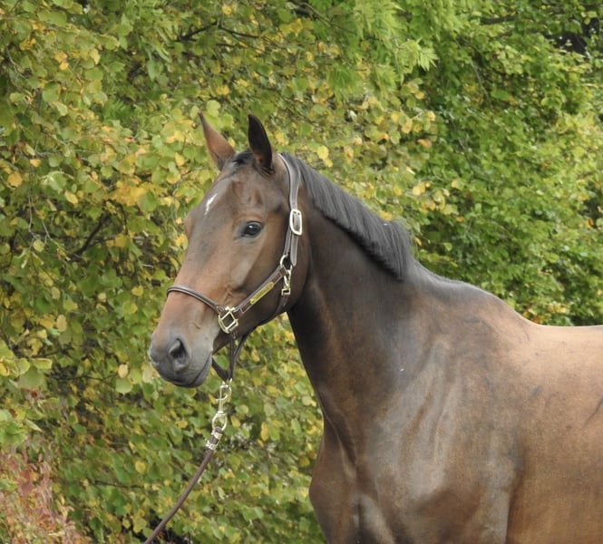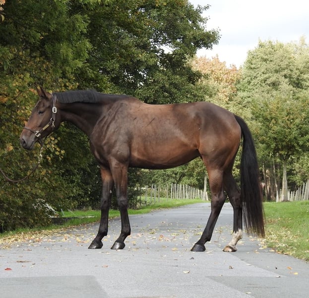 ❗️Wij verzoeken u vanwege de hoge schrijfbelasting uitsluitend telefonisch contact op te nemen.❗️ Te koop is een 6-jarige bruine merrie met een schofthoogte van ongeveer 1,72 m. De merrie komt rechtstreeks van de fokker en is goed gesocialiseerd opgegroeid in een kudde. Ze is tot nu toe uitsluitend recreatief gereden door amateurs en kinderen, waarbij ze zich te allen tijde en ook in nieuwe situaties altijd brave gedraagt. Buitenritten, zowel alleen als in groep, zijn haar ook bekend. In de dressuur mag ze graag verder ontwikkeld worden, met de nodige basisgangen voor het grotere vierkant is ze zeker uitgerust. Zonder voorafgaand telefonisch contact zullen we geen video's van onze paarden versturen, daarom verzoeken we u om aanvragen "stuur video" te vermijden. Bezichtigingen zijn op elk moment mogelijk. Voor verdere vragen zijn we telefonisch bereikbaar op 0171 530 33 40. Alle rechten op de afbeeldingen behoren toe aan Sport- en Recreatiepaarden Wilfried Oestersandforth. Verspreiding of publicatie is strikt verboden.