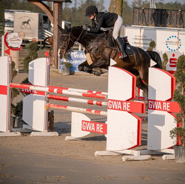 This five-year-old mare combines excellent genetics with sporting excellence: modernity, elegance, charm, and a natural elasticity that makes every jump an experience. Her springy take-off and positive attitude towards sport make her a fantastic partner in show jumping. Diadonna is motivated, with a clear performance mindset, and impresses with a true athlete’s mentality, making her a genuine sporthorse. Her interior and exterior are a perfect match—an impressive combination of quality, charm, and sporting class. Diadonna draws her talent from the best and most successful bloodlines, thanks to international top sires: Diarado x Equest Carnute. Her direct dam, "Tinette," was herself placed up to 1.50 m under Angelique Hoorn and won World Cup show jumping events. Her sire, "Diarado," was the Bundeschampion at five years old and has won international show jumping competitions up to 1.45 m. At just five years old, Diadonna has already demonstrated her sporting qualities impressively: despite her young age, she has amassed countless experience in courses and competitions. She has numerous placings up to 1.10 m and has jumped courses up to 1.20 m.
