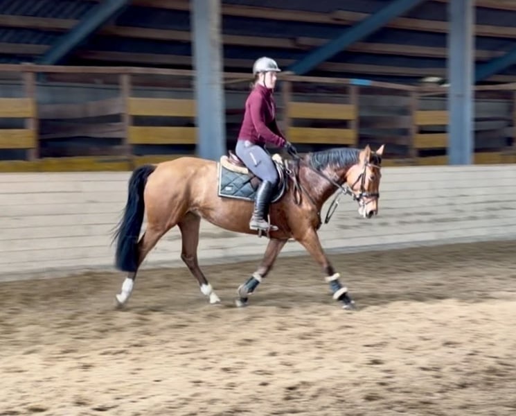 Adele es una yegua alemana de aproximadamente 1.60 m de altura, con una excelente línea de sangre, descendiente de Asterix de Couleur y Lord Petzi. Este caballo ya ha sido presentado con éxito en competición y destaca por su excelente estilo de salto. Adele es la montura ideal para jinetes que valoran un caballo motivado. En su manejo, la yegua es muy tranquila y fácil de tratar. Con este caballo, no hay duda de que una exitosa temporada de concursos está a la vista. Para más información y videos, no dudes en contactarnos por WhatsApp o por teléfono al: 00436603632373. Ubicación: Pelmberg 15 / Alta Austria ¡Las visitas y sesiones de prueba son bienvenidas con cita previa! El transporte del caballo puede ser gestionado si se desea.