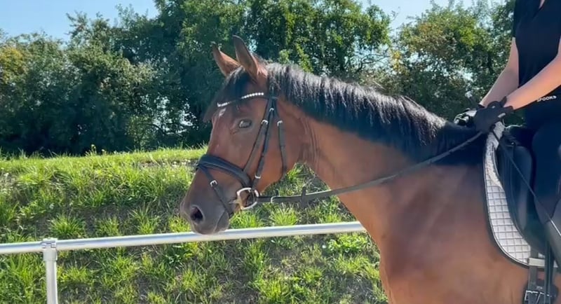 "Baroness" is a 6-year-old mare directly from the breeder. Thanks to her excellent pedigree, she had a foal at ages 4 and 5 and was lightly backed at age 6. She now moves confidently at dressage horse level A. She possesses a lot of quality! Due to her late start under saddle after her breeding career, she would be the perfect horse for someone looking to develop a high-quality horse from the ground up. Her foals have been championship contenders. Baroness herself scored a 9.5 for movement at her foal inspection and was also qualified for the Foal Championship.