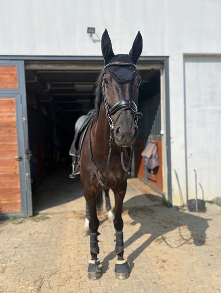 Mit schwerem Herzen verkaufe ich eine wundervolle 7-jährige Stute der Rasse Deutsches Sportpferd. Sie ist etwa 168–170 cm groß. Kotlina wurde mit wunderschöner Erscheinung und beeindruckendem Bewegungsablauf ausgestattet, was nicht zufällig ist – ihr Vater Santana ist ein Sohn des bekannten Sandro Hito, der große Erfolge auf Grand Prix-Niveau erzielt hat. Die Mutter stammt von dem ebenso majestätischen Rohdiamant ab. Sie ist zweifellos ein vielversprechendes Pferd mit großem Potenzial für die Zukunft. Sie hat bereits mehrfach an Turnieren teilgenommen – die Turnieratmosphäre beeindruckt sie nicht, sie zeigt sich stets hervorragend vorbereitet. Sie kann sich definitiv gut präsentieren :) Sie zeichnet sich durch elastische und großzügige Bewegungen aus, die auch von den Richtern hoch geschätzt werden. Sie ist äußerst reaktionsschnell auf alle Hilfen, unglaublich konzentriert auf den Reiter – sie gibt dem Training ihr Herzblut. Derzeit ist sie bis zur Klasse N ausgebildet, mit Potenzial nach oben. Kotlina ist unglaublich sensibel und aufmerksam. Sie benötigt eine ruhige und klare Führung – nicht für Anfänger geeignet. Ich suche einen erfahrenen Besitzer, der ihr weiteres Wachstum ermöglicht und vor allem einen verantwortungsvollen, respektvollen Platz bietet. Die Stute ist gesund, nicht verletzt. Sie steht in ständiger Betreuung eines Physiotherapeuten. Sie wird entsprechend ihrer Bedürfnisse gefüttert und mit Nahrungsergänzungsmitteln versorgt. Bei tierärztlichen Behandlungen oder Hufpflege zeigt sie keinerlei Schwierigkeiten. Sie ist regelmäßig entwurmt und geimpft. Das Reisen im Pferdeanhänger sowie das Aufladen sind für sie kein Problem. Sie ist gut erzogen – achtet auf den Menschen, respektiert den Raum. Sie kann sehr gut an der Longe laufen, reagiert auf akustische Kommandos und ist brav. Täglich von morgens bis abends steht sie auf ihrer Weide (nicht in einer Herde, da sie auf den Hinterbeinen steht, aber hatte nie Probleme mit anderen Pferden). Kotlina ist ein außergewöhnliches Pferd mit großem Herz und sportlichem Potential. Ich verkaufe nur an einen guten Platz mit Weiden und an eine erfahrene Person. Händler und Reitschulen danke ich. Die Stute befindet sich derzeit in der Woiwodschaft Pommern, Pępowo, Kartuskie. Der Preis beträgt 120.000 zł. Verkauf aus privaten Gründen. Bei Fragen stehe ich gern für eine private Kontaktaufnahme zur Verfügung. Bitte nur bei ernsthaftem Interesse per Nachricht (SMS, WhatsApp, Messenger). Telefonnummer: 501 524 585.