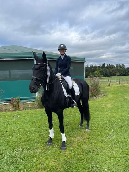 Bella, eine Stute die alles mitbringt, was das Herz begehrt! Als Absetzer kam sie zu mir, 4 jährig hat sie ein gesundes Fohlen bekommen, daher wurde sie etwas später angeritten. 6 jährig hatte sie ihren ersten Turnierstart und konnte sich in Dressurpferde A an zweiter Stelle platzieren. Schon optisch zieht sie alle Blicke auf sich, dazu kommt ihre bezaubernde, menschenbezogene, liebe Art. Sie bringt 3 überragende Grundgangarten mit und ist sehr sitzbequem und rittig. Aktuell lernet sie die Lektionen der Klasse L. Mit ihrer feinen Art steht sie angenehm an den Hilfen, und freut sich auf einen einfühlsamen Reiter. Ob im Umgang oder beim reiten, Bella möchte ihrem Menschen immer gefallen. Auch das Ausreiten kennt sie. Bella ist herdenverträglich und absolut sozial und offen gegenüber anderen Pferden. MIM (PSSM2) frei! Eine aktuelle sehr gute Ankaufsuntersuchung liegt vor. Verkauft wird sie wegen Bestandsverkleinerung, da sie uns sehr am Herzen hängt, wird sie nur in beste Hände mit täglichem Weidegang verkauft.