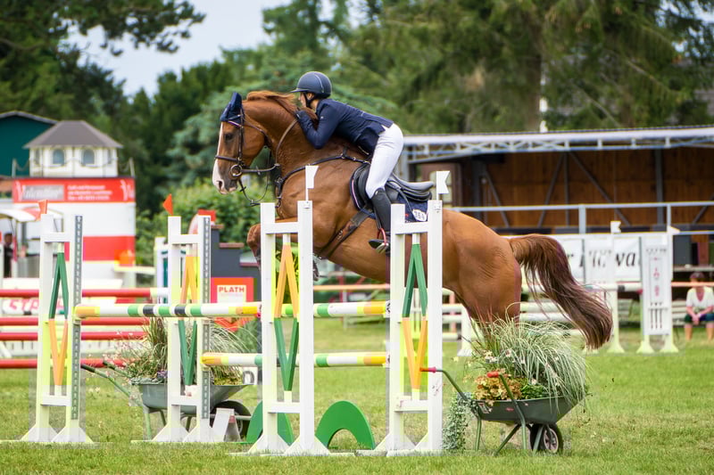 Capitana Romantica is a 6-year-old chestnut mare of substantial size, who has been trained according to her age. She has a good character, is not spooky, and has no bad habits. Due to her ambition, she requires a rider with a solid seat and soft hands. Capitana has competed in show jumping at the A, L, and M levels and has achieved successes in L and M show jumping.