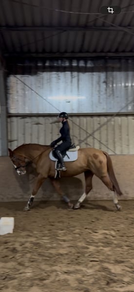 Reliable and well-behaved all-round horse For sale is a 7-year-old mare by Casskeni II out of Quaterman I. She stands approximately 1.74 m (around 16.1 hh) and has been trained in both dressage and show jumping. She is versatile and handles both disciplines well, with potential for further development. Currently competing at A-level in dressage and jumping. Cassy is calm, reliable, and easy to ride, making her an excellent choice for riders looking to progress or switch disciplines. Rides well alone and in groups in the terrain Halter- and load-trainable Healthy, no health issues Placed in show jumping competitions A recent comprehensive health exam from September is available. She is a true dependable partner! Serious inquiries are welcome via message.