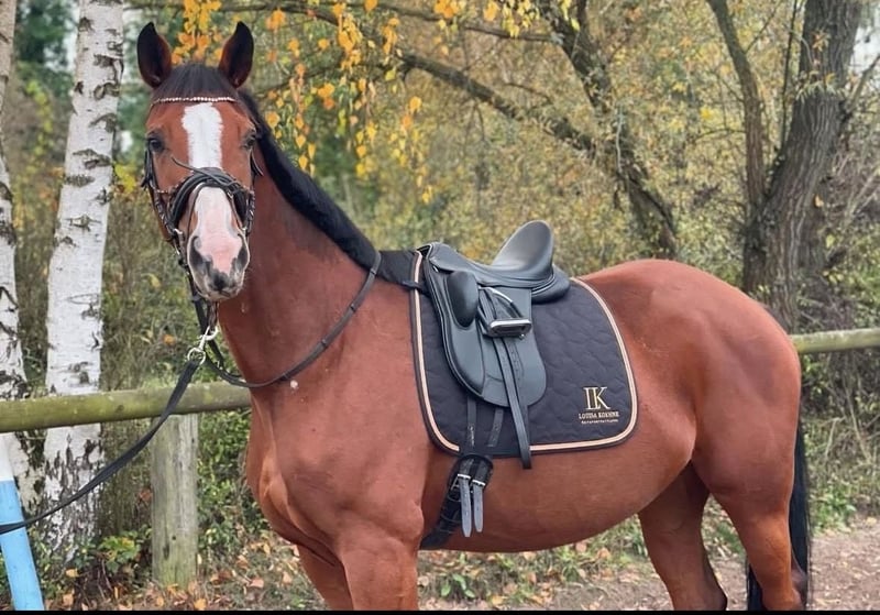 Z ciężkim sercem muszę rozstać się z moją klaczą. Zawsze chce się podobać, świetnie współpracuje, potrzebuje dużo ruchu, ma bardzo ładne chodzenie i wspaniały skok. Mimo to potrzebuje jeźdźca, który zapewni jej bezpieczeństwo i potrafi odczytać jej sygnały, ponieważ gdy ktoś jest na niej niepewny lub coś nie pasuje, czasami pokazuje to kłusując lub próbując się wyrywać. Lubi testować granice, ale gdy tylko zauważy, że osoba na niej nie da się wyprowadzić z równowagi, wraca do pełnej koncentracji i współpracuje świetnie. Niestety, nie jestem w stanie nad nią zapanować, dlatego decyduję się ją oddać. Na co dzień u mnie jest zbyt dużo czasu spędza w stajni, a ona potrzebuje regularnego ruchu i pracy. Jest już wyjzałowana (gotowa do jazdy we wszystkich podstawowych chodach, z dobrą elastycznością, pracuje na boki…), zna podstawy, jeźdzona w terenie, pełni funkcję konia do towarzystwa, jest bardzo spokojna podczas wizyt u weterynarza i kowala, świetnie pracuje na lonży i jest dobrze ułożona na ręku. Posiadamy pełną dokumentację AKU wraz z rentgenami, zęby są świeżo zrobione, była regularnie poddawana osteopatii, często odwiedzała kowala, została regularnie odrobaczona. Dostępne są filmy z jazdy, które chętnie prześlę zainteresowanym!