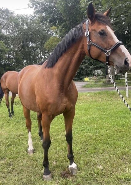 With a heavy heart, I have to part with my mare. She always wants to please, works wonderfully with her rider, and enjoys plenty of movement. She has very nice gaits and an excellent jump. However, she still needs a rider who can give her confidence and read her signals, because if someone is uncertain on her back or if something doesn’t feel right, she may show her displeasure by bucking. She likes to test boundaries, but once she realizes that her rider remains calm and confident, she refocuses completely and works excellently. Unfortunately, I haven’t been able to match her energy and temperament, which is why I want to find her a new home. Over time, she has been with me too much; she needs regular exercise and work to stay happy and balanced. She is backed (ridable in all paces, with contact, leg-yielding…), knows the basics, has been ridden in the field, and is used as a lead horse. She is very well-behaved and works beautifully on the ground when handled by the vet or farrier. A comprehensive health check, including X-rays, is available. Her teeth have been recently floated, she has been regularly treated osteopathically, introduced to the farrier regularly, and has been dewormed recently. Riding videos are available and can be sent upon request!