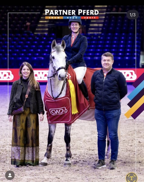For sale is an elegant and talented German sport mare, always ready to win. With her striking grey coat and a height of 16.1 hh, she is a true eye-catcher both visually and athletically. She is ideally suited for show jumping and possesses the necessary talent, jumping technique, and willingness to learn to excel in the competition scene. An absolutely uncomplicated course horse. At age 7, she has already won multiple L-level show jumping classes. The mare is healthy, well-trained, and shows great potential for ambitious riders seeking a reliable partner. X-rays are available with no findings! Directly from the breeder and trainer, from the first hand!!! She is only being sold because the next generation of young horses is being brought on. Additional videos can be found under "Quentina 21" on Rimondo or clipmyhorse.tv, or upon request. If you are interested or have further questions, I am happy to assist. Viewings and test rides are possible by arrangement (for a fee).