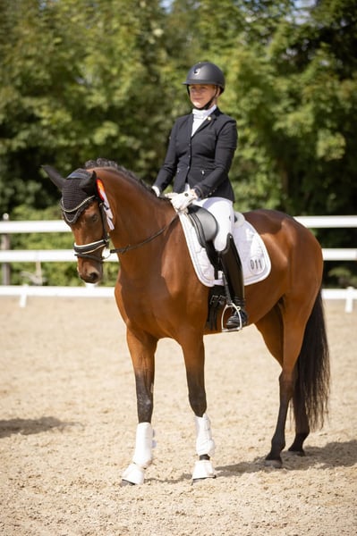 Malou - eine bildschöne 8 jährige Stute, die mit ihrer Ausstrahlung und ihrer leichtfüßigen Art Jeden zu begeistern weiß. Sie ist mehrfach Dressurpferde M platziert und präsentiert sich stets mit bester Arbeitseinstellung und enormer Rittigkeit, wobei sie ganz fein in der Anlehnung und sehr sitzbequem ist. Gute Ansätze für Piaffe und Passage runden ihr Talent und Potential für die Zukunft ab. Auch auf dem Turnier zeigt sie sich souverän und nicht glotzig. Mit ihrer lieben und feinfühligen Art sucht sie nun ein neues Zuhause, wo sie geliebt und geschätzt wird. Gute Röntgenbilder vorhanden. Platz vor Preis in wertschätzende Hände