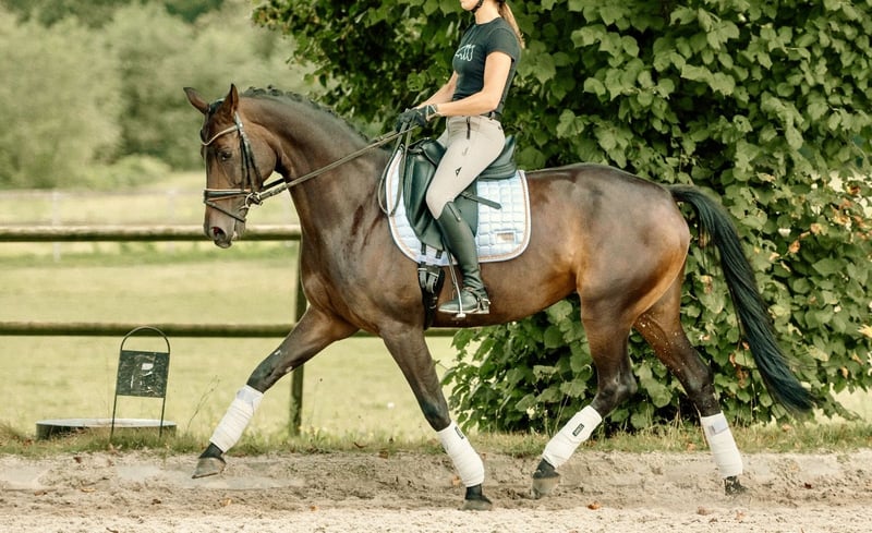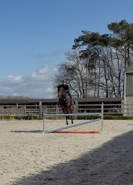 Bloedmooie sportmerrie van 2018 met veel werklust en een interessante, bewezen moederlijn. Afstamming: Romeo (v. Romanov) x Den Haag x Saros xx. Dressuurkwaliteit gecombineerd met hardheid en instelling vanuit het volbloed. Komt uit fokfamilie 1890, een lijn waar aantoonbaar sport in zit: * Meerdere paarden op Z / Advanced Medium / PSG-Inter I niveau * In de verdere lijn Grand Prix dressuur * Ook springen tot ca. 1.30/1.35m en eventing * Predicaten in de stam zoals Ster / Stb / prestatie De merrie zelf: * Voorwaarts en werkwillig * Fijn te rijden, meedenkend * Goede, zuivere gangen * Laat zich makkelijk bewerken * Voorzichtig op de sprong Opleiding / ervaring: * Dressuur op Z-niveau * Springen 110/120 cm * Eventing B/L Geschikt als allround sportpaard of om verder door te rijden richting hogere klasses. Ook interessant voor de fokkerij.
