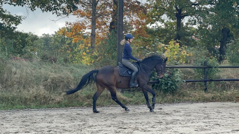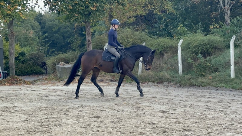Eight-year-old dark bay mare with potential seeking a supportive home For sale is an 8-year-old dark bay mare with good basic gaits and lots of engagement. She is motivated under saddle, shows no vices such as rearing or bucking, and is herd-friendly. She enjoys hacking out and jumping, bringing great pleasure in both disciplines. She is well-behaved at the blacksmith's. She particularly demonstrates strong ambition when jumping, makes excellent efforts over fences, and remains completely fearless. Due to her temperament and versatility, I can also very well imagine her as a eventing horse. She is not a beginner's horse, as she occasionally requires a clear, consistent approach. For personal reasons, she has been worked well below her potential and has had several breaks—not due to injury, but for human reasons. The mare is in top condition and healthy; TÜV including back assessment available. A prompt sale is preferred. For uncomplicated, quick sale, there is room for negotiation. I wish for a loving home where she can be further supported and worked according to her potential. Approximate height: 16.1 hh; for orientation, the rider is about 17.8 hh. The mare had a break over the winter and we are now resuming training. To avoid riding tourism, a fee of €20 applies for a trial ride. Please note, this is a sales listing. No leasing or gifting due to special circumstances. I kindly ask to refrain from such inquiries. Thank you very much! €7,900 if collected by the end of February. Otherwise, €9,900 negotiable.