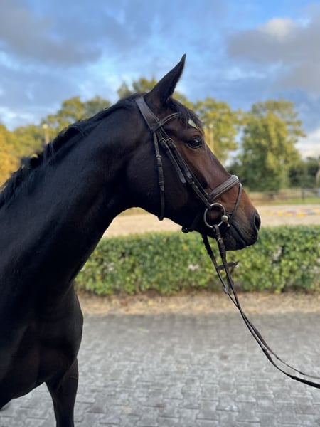 Achtjährige dunkelbraune Stute mit Potenzial sucht förderndes Zuhause Zum Verkauf steht eine 8-jährige, dunkelbraune Stute mit guten Grundgangarten und viel Engagement. Sie ist beim Reiten motiviert, zeigt keine Unarten wie Steigen oder Bocken und ist herdenverträglich. Beim Ausreiten sowie am Sprung macht sie große Freude. Beim Schmied ist sie brav. Besonders beim Springen zeigt sie sich sehr ehrgeizig, macht einen wirklich guten Sprung und ist dabei absolut unerschrocken. Aufgrund ihres Charakters und ihrer Vielseitigkeit kann ich sie mir auch sehr gut als Vielseitigkeitspferd vorstellen. Sie ist kein reines Anfängerpferd, da sie gelegentlich eine klare, konsequente Linie benötigt. Aufgrund persönlicher Gründe wurde sie bisher deutlich unter ihrem Potenzial gearbeitet und hatte mehrere Pausen – nicht verletzungsbedingt, sondern aus menschlichen Gründen. Die Stute ist topfit und gesund, TÜV inkl. Rücken liegt vor. Ein zeitnaher Verkauf wird bevorzugt. Bei unkomplizierten schnellen Verkauf besteht ein größer Verhandlungsspielraum. Ich wünsche mir ein liebevolles Zuhause, in dem sie weiter gefördert und ihrem Potenzial entsprechend gearbeitet wird. Größe ca 168, zur Orientierung die Reiterin ist ca 178 Die Stute hatte über den Winter nochmal Pause und nun starten wir wieder mit der Arbeit. Um Reittourismus zu vermeiden fällt 20€ für ein Probereiten an. Nochmal ein Hinweis, es handelt sich um eine Verkaufsanzeige. Kein zur Verfügung stellen und kein verschenken aufgrund besonderer Umstände. Ich würde mich sehr freuen wenn von solchen Anfragen abgesehen wird. Vielen Dank! 7900€ wenn sie bis Ende Februar abgeholt wird. Ansonsten 9900€ vb
