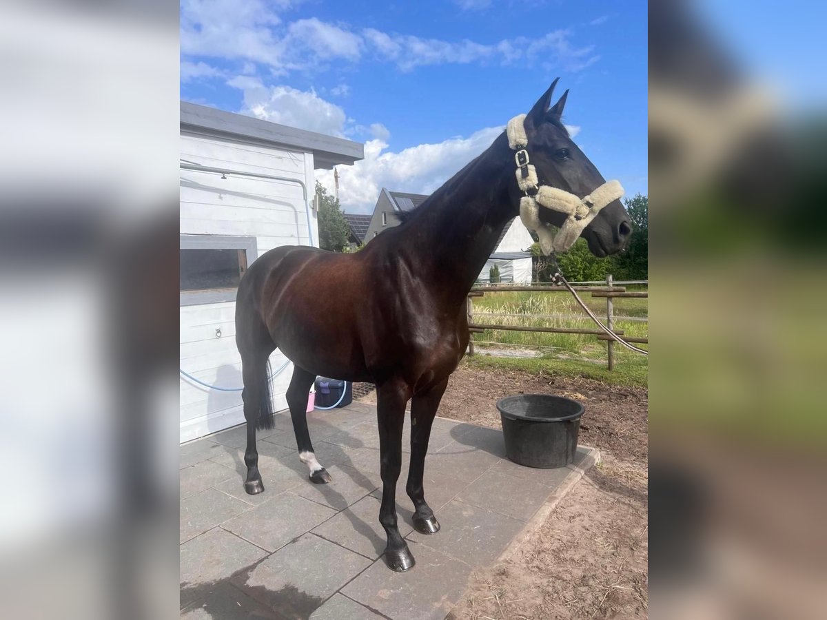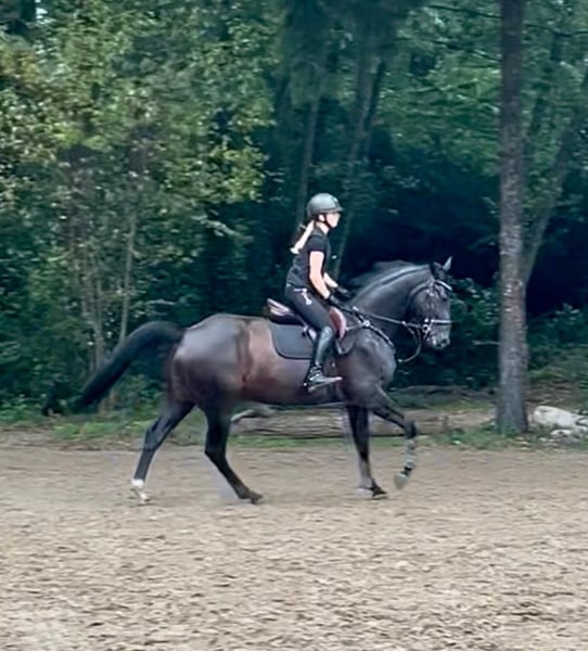 9-jährige lackschwarze sportliche Stute zu verkaufen. Unsere Stute zeichnet sich durch Ausgeglichenheit und Zuverlässigkeit im täglichen Umgang aus. Sie verfügt über viel Vermögen und Ehrgeiz. 2024 hat sie unter einem erfahrenen Reiter Springpferde-L gewonnen sowie Springpferde-M platziert. Wegen aktiver Reitsportaufgabe unserer Tochter (14 J.) suchen wir auf diesem Wege ein neues Zuhause in dem sie weiter gefördert und gefordert wird. Sie steht in gemischter Herde in Offenstallhaltung ist aber auch Boxenhaltung gewöhnt. Sie ist verlade-und schmiedefromm. Regelmäßig entwurmt und geimpft. Unsere Tochter hat in der letzten Saison einige WBO-Erfolge mit ihr erreichen können. Wir weisen ausdrücklich darauf hin, dass die Stute seit Juni 2024 „nur" WBO-Höhe gesprungen ist! Daher wird sie auch ausdrücklich nicht als fertiges Springpferd verkauft. Entweder braucht die Stute in der Ausbildung zum Springpferd einen erfahrenen Reiter oder dient für jüngere unerfahrene Reiter und Reiterinnen eher als Freizeit-/ Hobbypferd mit kleinen Turnierambitionen. Die Stute geht problemlos durch Wasser und springt Geländesprünge (Baumstämme) - daher vielleicht auch für die Vielseitigkeit interessant. Guter TÜV aus 2024 liegt vor (klinisch u. röntgenologisch). Platz vor Preis. Kein Schulbetrieb. Zubehör kann optional mit erworben werden. Täglich telefonisch erreichbar. Weitere Bilder oder Videos auf Anfrage.
