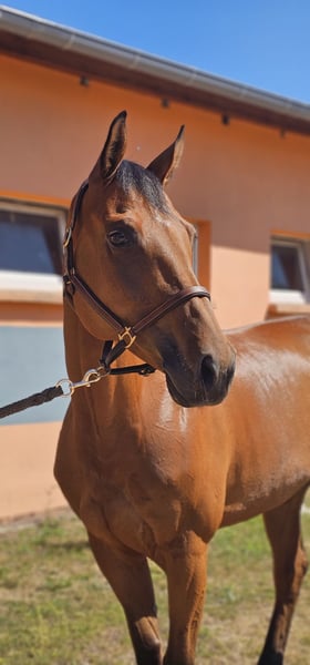 This beautiful chestnut mare (born 2017) combines sporting talent with a reliable, balanced temperament – exactly what ambitious riders appreciate. Standing at 16.1 hh, she is ideal for transitioning from pony to horse and offers juniors and children a safe, refined entry into competitive riding. She comes from top German breeding, has great scope over fences, and already has placings up to 1.30 m and 1.40 m. She has been gently brought along so far and has not been overworked, making her a fantastic young horse with development potential for future sport. In daily training, she proves to be motivated, eager to learn, and sensitive to aids – a horse you genuinely enjoy bringing out of the stable every day. Character-wise, she is straightforward, people-oriented, and resilient, making her an absolute asset for both ambitious juniors and adult riders. For riders seeking more than just a sport horse: Besides her athletic qualities, she is also a true hobby horse with a lot of heart and transparent communication under saddle. I am selling her with a heavy heart, as my current studies prevent me from dedicating the time needed to develop her sportingly. If interested or if you have any questions, please feel free to contact me. Viewing and trial riding are possible by arrangement – come and get to know this special mare in person!