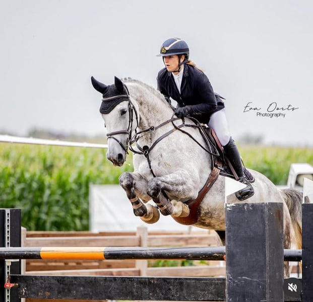 English below ⬇️ Te koop: 9-jarige eventingmerrie van Blockbuster (1m60 – Marco Kutscher) uit een Corrado I-moeder. Ze is slechts een jaar actief in de eventing maar inmiddels al startgerechtigd op CNC2*-niveau! In de cross onderscheidt ze zich door een super positieve instelling, gepast bloed, een sterke galop en veel vermogen. Ze is dapper, meedenkend en wilt alles geven voor haar ruiter! In de dressuur loopt ze correcte proeven, met nog ruimte voor verdere verfijning. In het springen presteert ze heel consistente rondjes. Dit alles heeft al meerdere top 10-klasseringen opgeleverd. Ze verkeert in goede gezondheid; klinische en röntgenologische keuring zijn beschikbaar. We verkopen omdat we eigenlijk jumping georiënteerd zijn en de combinatie van 2 disciplines niet ideaal is. Daardoor mankeren wij de focus om haar potentieel verder te ontwikkelen. Whatsapp +32 476 56 36 11 ___________________________ For sale: 9-year-old eventing mare by Blockbuster (1m60 – Marco Kutscher) out of a Corrado I dam. She has only been active in eventing for one year, but is already qualified to compete at CNC2* level. In cross-country she stands out with a very positive attitude, the right amount of blood, a strong gallop, and plenty of scope. She is brave, intelligent, and gives her rider everything. In dressage she produces correct tests, with room for further refinement. In show jumping she delivers very consistent rounds. Altogether, this has already resulted in multiple top 10 placings. She is in good health; clinical and X-ray examinations are available. We are selling her because our main focus is show jumping, and managing two disciplines at this level is not ideal. We lack the time to further develop her eventing potential. Whatsapp +32 476 56 36 11