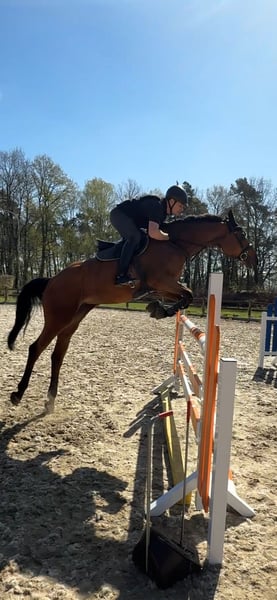 Sprzedajemy wyjątkowo utalentowaną klacz o doskonałym pochodzeniu i imponującej jakości skoków. W skokach przez przeszkody już wielokrotnie plasowała się na wysokich pozycjach w konkursach średniej kategorii i wyraźnie pokazuje swój potencjał na wyższe poziomy. Przekonuje dużym ambicją, świetnym nastawieniem do sportu oraz bardzo przyjemnym, zawsze kontrolowanym „go” na parkurze. Podczas skoku daje jeźdźcowi poczucie dużego bezpieczeństwa i pozytywne wrażenie. Gdy tylko zdobędzie jej zaufanie, ma wszystkie predyspozycje, by stać się prawdziwą partnerką w trudnej klasie. Idealnie widzielibyśmy ją u doświadczonego jeźdźca startowego, który z delikatną i spokojną ręką zapewni jej niezbędną pewność na parkurze i będzie mógł celowo rozwijać jej dalszy potencjał. Pod siodłem wykazuje się wrażliwością na pomoce, jest czujna i zawsze stara się robić wszystko poprawnie. W codziennym kontakcie jest absolutnie łagodna, łatwa w obsłudze i niezawodna – oczywiście przyzwyczajona do transportu i czysta od schorzeń. Dodatkowo jest bardzo przytulańska, towarzyska i miła w obsłudze. Jeśli szukasz ambitnego konia skokowego z dużym sercem, zaangażowaniem, talentem i odpowiednią ostrożnością przy skoku, ta wyjątkowa klacz z przyszłością jest właśnie dla Ciebie. W przypadku poważnego zainteresowania chętnie nawiążemy kontakt.