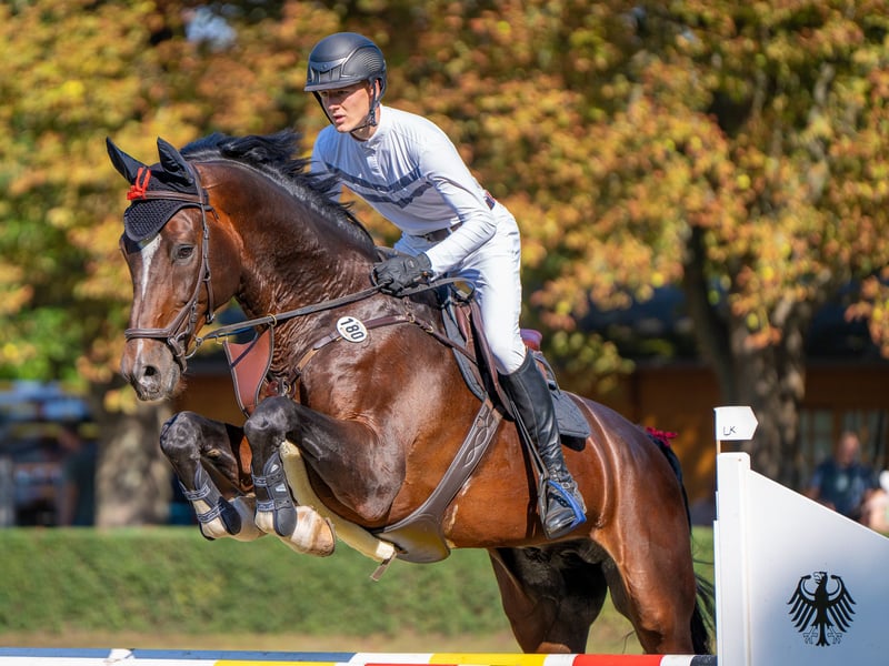 «Classic Balou» est un hongre de 14 ans issu d'un élevage familial. Depuis 2019, il a évolué avec un jeune cavalier, passant des épreuves de saut d'obstacles pour enfants jusqu'au Championnat d'Allemagne des Jeunes Cavaliers, ce qui en fait un excellent maître d'apprentissage. Lors des compétitions, il a été présenté jusqu'en S**. Cette saison, Balou a été plusieurs fois classé en S* et a remporté 5 fois en M*. Il cherche toujours à franchir les obstacles et aide le cavalier même lorsque la distance n'est pas idéale. Dans le travail quotidien, Balou est très facile à gérer : avec sa taille de 1,80 m, il est facile à monter en dressage, saute des changements de pied et peut réaliser des figures comme le galop extérieur. Autres succès sportifs : ✅ 2024 Participant au Championnat d'Allemagne des Jeunes à Riesenbeck ✅ Classé en saut d'obstacles S ✅ Champion régional des Jeunes Cavaliers en Saxe-Anhalt Pour plus d'informations, veuillez appeler ☎️ +49 152 01904917