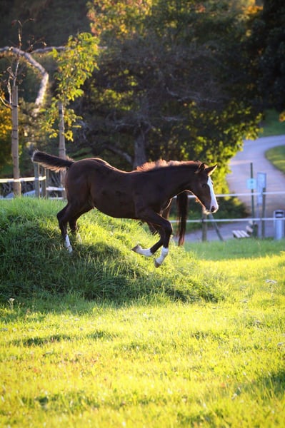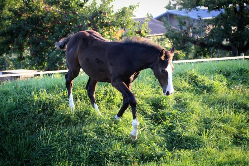 Typvolles, 5 Monate altes Hengstfohlen aus Quite Great x Co Pilot zu verkaufen. Korrekt gebaut, mit modernen Linien, viel Ausdruck und raumgreifenden Bewegungen. Vater Quite Great überzeugt mit Rittigkeit und Sprungvermögen, Mutter Co-Pilot mit Leistungsbereitschaft und Charakter. Menschenbezogen, neugierig im Umgang. Ein vielversprechender Youngster für Zucht oder Sport.