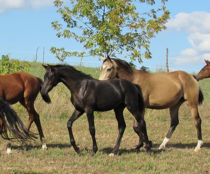 Nous vendons un très élégant poulain noir, fils du hongre Trakehner Ivanhoe (Élevage Hörem). D'une beauté typique incroyable et doté de très bonnes allures fondamentales, il est certainement intéressant pour les éleveurs de hongres. Nos juments d'élevage se distinguent toutes par un caractère très amical et désireux d'apprendre, ce qui nous permet d'attendre la même chose de leur descendance. La taille finale attendue est d'environ 170 cm. Il grandit dans un troupeau mixte avec deux autres poulains. Nos chevaux passent l'été dans de grands pâturages et, même en hiver, ils vivent à l'extérieur dans un abri ouvert avec un enclos d'environ 1 hectare. Une prise en charge serait possible, si souhaité. Nous élevons des chevaux de selle depuis 15 ans et avons ainsi une longue expérience en matière d'élevage et de soins. Une rencontre est possible à tout moment sur rendez-vous. Au printemps 2026, nous aurons également un fils de Freiherr von Stein, âgé de 3 ans, à vendre. Celui-ci est actuellement en élevage avec un autre hongre. Si vous êtes intéressé, je peux vous fournir plus d'informations.