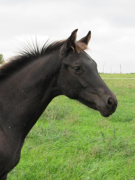 Wir verkaufen ein sehr edles schwarzes Hengstfohlen vom Trakehnerhengst Ivanhoe (Gestüt Hörem). Unheimlich typschön und mit sehr guten Grundgangarten ausgestattet ist er sicherlich auch interessant für Hengstaufzüchter. Vom Zuchtverband wurde er mit der Fohlenprämie ausgezeichnet. Er ist ein sehr freundliches und aufgeschlossenes Fohlen. Der tägliche Umgang mit ihm bereitet immer wieder Freude. Unsere Zuchtstuten zeichnen sich alle durch einen sehr freundlichen und lernwilligen Charakter aus, so dass wir dieses auch von deren Nachzucht erwarten dürfen. Das erwartete Endmass ist ca. 170 cm. Er wächst in einer gemischten Herde mit noch 2 weiteren Fohlen auf. Unsere Pferde verbringen den Sommer auf großen Koppeln und auch im Winter leben sie draußen im Offenstall mit einer 1h grossen Winterweide. Eine Aufzucht wäre möglich, wenn gewünscht. Wir züchten seit 15 Jahren Reitpferde und verfügen dadurch über langjährige Erfahrung in Zucht und Aufzucht. Ein Kennenlernen ist gerne jederzeit nach Absprache möglich. Zum Frühjahr 2026 hätten wir noch ein dann 3 jährigen Sohn vom Freiherr von Stein zu verkaufen. Dieser steht momentan mit einem weiteren Hengst hier zur Aufzucht. Bei Interesse kann ich gerne weitere Informationen zu kommen lassen.