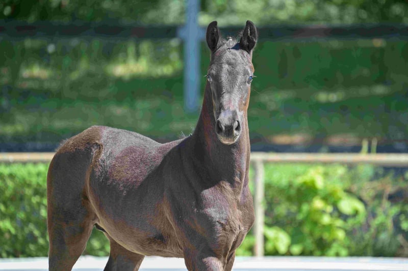 Striking colt by Glamourdale x De Koonig (Donnerhall) x Christ This foal combines modernity and tradition! Dressage blood, confirmed rideability, and a presence that captivates, with a strong type, a lot of expression, and an exceptionally friendly, people-oriented character. Here is the chance for a very good riding horse with all possibilities. An unwavering walk, energetic movement in trot and canter with an uphill tendency from a powerful hind leg. The dam De Schoonheid is a 3-year-old Brilliantring mare with a performance test score of 8.25. Full brother to the dam is a South German premium stallion and has been successful up to M**. Half-sister Mary Lou placed 3rd at the Bundeschampionat and has been sold to the USA. https://horsetelex.de/horses/pedigree/2685343/g For inquiries: Florian Runge 0174/33 21 987