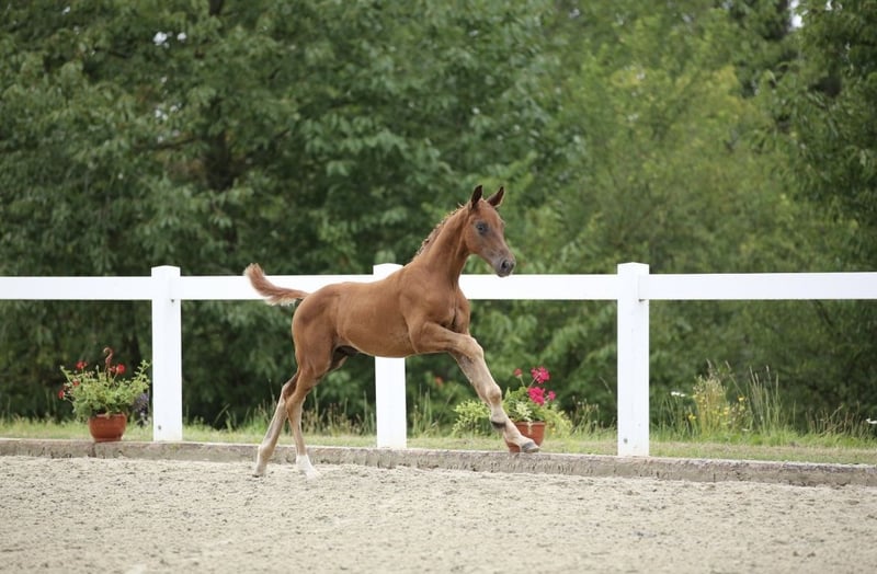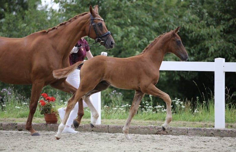 Interesante potra de dos años, hijo de Va Bene x Quaterback – con potencial para deporte y licenciamiento Se ofrece a la venta un ejemplar de dos años de gran calidad, con una excelente genealogía de Va Bene x Quaterback. Este joven semental combina un aspecto moderno, mucha expresión y un movimiento elástico y potente, con una tendencia natural a la recolección. Se presenta con una mecánica muy buena, activa detrás y con mucha libertad en los hombros, cualidades que lo hacen especialmente interesante tanto para la alta doma como para la cría. Debido a su tipo, calidad y fuerza en el movimiento, consideramos que es un candidato prometedor para una futura licenciamiento. En su edad, todavía está sin montar, pero en el trato diario se muestra tranquilo, atento y fácil de manejar. Está acostumbrado a cepillarlo, llevarlo a la cuerda y a las tareas básicas de manejo. Actualmente crece de forma adecuada a su edad y ha podido desarrollarse con calma y sin presión, lo que le proporciona las mejores condiciones para un futuro deportivo sostenible. La venta se realiza exclusivamente a un lugar adecuado que reconozca y fomente su potencial. No depende de la venta, por lo que solo se entregará en un entorno correcto y con una oferta adecuada. La razón de la venta es simplemente que el deporte ecuestre no encaja actualmente con mi situación de vida. Si está interesado en serio, agradecería un mensaje con una breve descripción del posible lugar de destino. ¡EL PRECIO ES SIMBÓLICO!