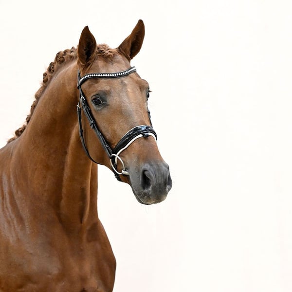 Beautiful stallion from the van’t Heike lineage (BWP – Line 52) – his dam is full sister to Valentina van’t Heike. The stallion was approved for the Oldenburg licensing, but due to a medical issue, we decided to withdraw him (he is still eligible for licensing!). According to assessments by two veterinarians, he is unlikely to encounter any problems in the future.