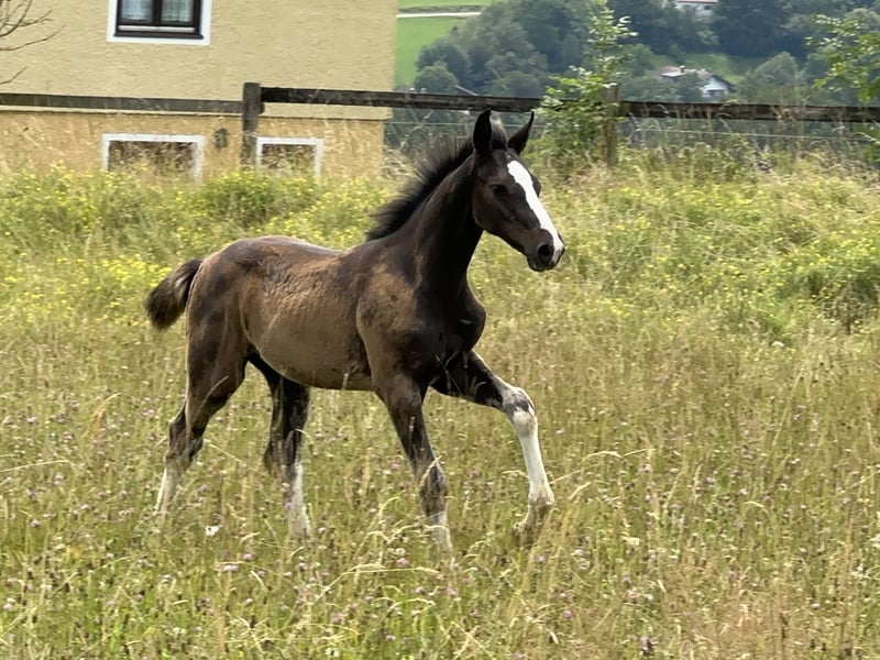 Lord Frechdachs AB ist ein äußerst korrekter, doppelveranlagter und sehr nervenstarker junger Mann. Sein Vater ist unser selbst gezogener Holsteiner Prämienhengst und HLP Sieger Lord Fernando AB der mit überragender Rittigkeit und sehr guter Dressur- wie Springveranlagung überzeugt. Schon sein Vater, unser Lamborghini Boy war doppelbegabt (M springen/S Dressur). Und ebenfalls, wie alle seine Kinder, charakterlich ein Schatz. Escarda, die Mutter von Lord Fernanfo AB, war S Springen erfolgreich. Die Mutter von Lord Frechdachs AB, Diabola , eine De Niro Tochtet, hat zwei Vollbrüder die bis S/ Inter erfolgreich waren. Der Volbruder von Lord Frechdachs AB, Lord of Life AB, wurde hier auf dem Gestüt von mir noch angeritten und überzeugte, auch seine Besitzer, auf ganzer Linie als sehr rittiges, soziales, Leistungsbereitschaft, doppelbegabtes und immer Spaß bringendes Freizeitpferd für die ganze Familie. Lord Frechdachs AB wächst artgerecht im Herdenverband mit älteren Erzieher und 7 Kumpels verschiedenen Alters auf. Durch das niederbayerische Hügelland mit verschiedenen Böden und 24/7 Sommerkoppel die auch als Nahrungsgrundlage dienen, haben alle unsere Pferde die besten Voraussetzungen um gesund aufzuwachsen. Natürlich beherrschen alle das Fohlen ABC und sind bereits im Anhänger zur Koppel gefahren. Alle haben dies vorzüglich gemeistert.