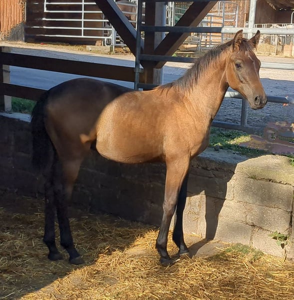 Puledro molto socievole con 3 andature molto buone e una conformazione corretta. È sicuramente un giovane cavallo promettente per il salto ostacoli.