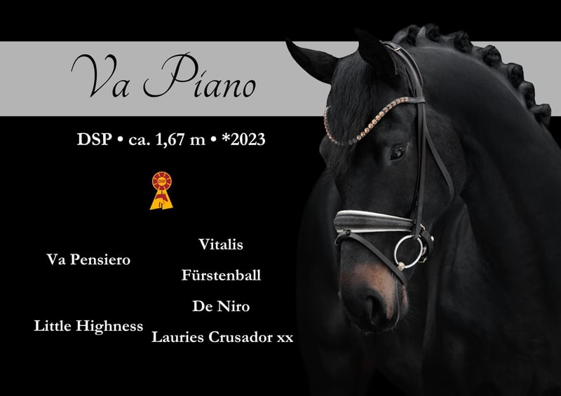 Dear Interested Parties, I am happy to send additional videos via WhatsApp at +49 171 3438949. For arranging trial rides, please send me a WhatsApp message. During the day, I am available via WhatsApp for further questions, and you can reach me best by phone between 4 PM and 7 PM. I look forward to hearing from you. www.angelina-devittorio.de ⭐️Va Piano⭐️ Age: 3 years (2023) Height: approximately 16.1 hh Pedigree: Va Pensiero x De Niro Training level: Currently being backed (in the process of being ridden) Health certificate: Up-to-date, very good health certificate including excellent X-ray images available For sale is a beautiful three-year-old stallion by Va Pensiero – a stunning young horse of exceptional quality. Here, an extraordinarily calm, brave, and friendly horse is developing, which brings joy and fun every day. He impresses not only with his charming demeanor but especially with his excellent basic gaits: ✨ Outstanding walk ✨ Very good trot mechanics with plenty of natural impulsion ✨ Very good canter with balance and potential Va Piano is well-developed for his age and has been lunged successfully. He is already familiar with rider’s weight in a playful manner and proves to be an absolute model student. Currently, he is being gently backed and ridden in our care – and he is consistently well-behaved, reliable, and clear-headed in every situation. You can easily mount and dismount alone, and he is a pleasure to handle. He can of course stay with us for further training and can also be castrated on-site. An absolutely well-behaved and friendly horse that will make his future owner very happy. He is completely non-hormonal and stands calmly next to mares. His beautiful exterior attracts everyone’s attention. If you are looking for a highly talented, stunning, and uncomplicated young horse with potential for the big arena, you will definitely find it here. His pedigree speaks for itself: He comes from a very good mare line with successful sport offspring.