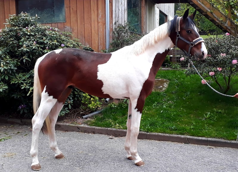 Con Colore ist ein Sohn des international erfolgreichen Con Spirito R der unter anderem auch in Nationenpreisen für die Schweiz erfolgreich am Start war. Con Spirito's Nachkommen sind bereits im internationalen Sport angekommen , so können wir auch bei Con Colore auf eine erfolgreiche Zukunft hoffen denn die Mutterseite ist über weitere S erfolgreiche Vatertiere bestens abgesichert !! Sie können hier mit einem Schecken züchten ohne auf begehrte Springlienien zu verzichten. Er ist AES gekört und kann somit Zangersheide Papiere bekommen und andere Ausländische Verbände auf Anfrage. Con Colore ist in Springprüfungen bis 110cm platziert. Röntgenbilder vorhanden !