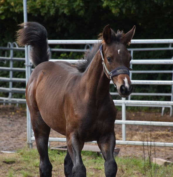 Schickes Hengstfohlen in dunkler Jacke, Sohn von Jack Blue - bekannt vom diesjährigen Bundeschampionat ❤️ Elwood bringt sehr gute Grundgangarten mit, hat ein harmonisches Exterieur mit guter Oberlinie und geradem Rücken . Charakterlich: neugierig, schnelle Auffassungsgabe, frech aber immer ein lieber Kerl Ein zukünftiger Sportler :-)