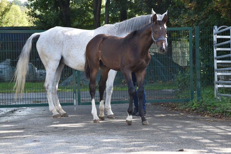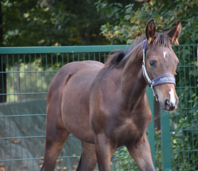 Stylish colt in dark jacket, son of Jack Blue - known from this year's Bundeschampionat ❤️ Elwood has very good basic gaits, possesses a harmonious exterior with a good top line and straight back. Character-wise: curious, quick to learn, cheeky but always a nice guy. A future athlete :-)