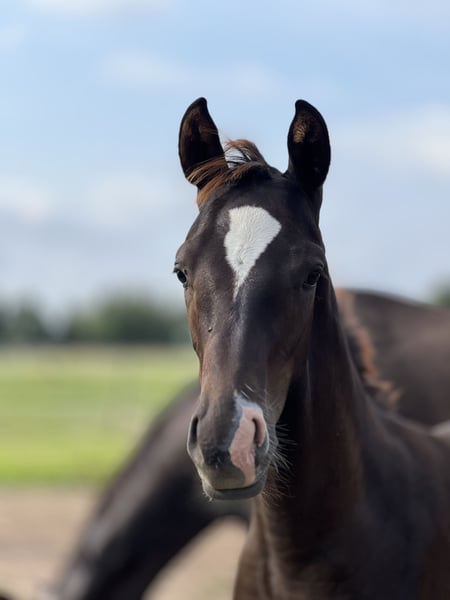 Real dark chestnut! Colt by Livaldon out of our De Chocolate – a horse close to our hearts with a bright future. This young dark chestnut has everything we desire from a modern sport horse: a beautiful silhouette, clear lines, very good basic gaits – and that certain something in expression. His sire Livaldon was a premium stallion of the State Stud Celle, successful up to S-class and known for his typy offspring with rideability and charisma. We are especially pleased that our foal belongs to the last crops of this exceptional stallion. The dam, our proven De Chocolate, always provides a solid foundation, good health, and fine movements. Her previous foals have found loving homes and are developing excellently there – something that is particularly important to us. Our little colt is friendly, curious, and very pleasant to handle on a daily basis. He is growing up in a herd in a species-appropriate manner and is given time to develop in peace. We wish for him a home where he will be supported – with patience, a loving eye for his qualities, and the willingness to see him as a partner, not just as a project. Further information, pictures, and a first video can be found here on our website.