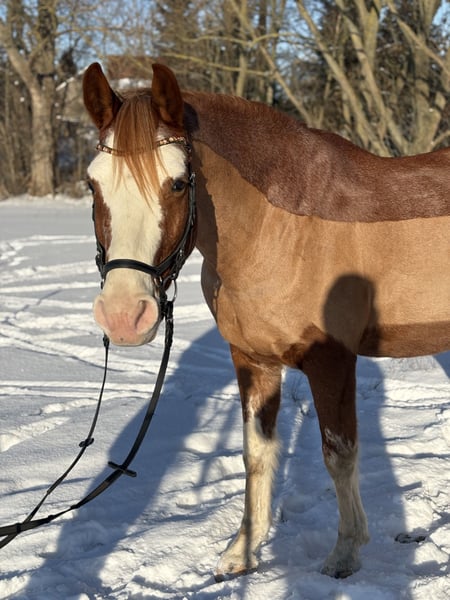 With a very heavy heart, I am looking for a new home for my gelding Baloo (sport name Atari MP), where he will be loved, supported, and appreciated. Born in 2016, approximately 16.1 hands tall, Baloo is a German sport horse with a strong, harmonious build—a type that simply looks good to many riders. He is primarily bred for jumping (sired by Alvalon / Askari) and has competed up to L-level show jumping, with placements in A-level classes. However, from L-level height upwards, Baloo shows some uncertainties due to his small "hare-hearted" nature, which is why I have decided not to compete him beyond this level. In E and A classes, he is motivated, honest, and enjoys his work. Currently, at home, we are working on L-level dressage tests, and I see a lot of potential for his future in this discipline. I would love for him to be ridden by an ambitious leisure rider who can further develop his dressage skills, possibly with competition aspirations up to L in dressage, combined with jumping at E/A levels. Baloo is also familiar with cross-country obstacles and jumps them confidently and bravely, making him a promising candidate for eventing. Additionally, he has been extensively and variedly ground-worked, inspired by approaches from Michael Geitner and horsemanship principles. Whether free-longeing or long-reining, Baloo responds attentively and with enthusiasm. Bitless riding is no problem for him and is a natural part of his training. Baloo is an absolute sweetheart in handling: well-behaved, human-oriented, fearless, and simply pleasant. The farrier, vet, loading, or traffic do not disturb his calm. He is not dull but very sensitive to his rider’s mood and reacts incredibly subtly to body language. Under saddle, he is not a typical beginner horse—on the arena or in the indoor, he can become a bit more lively. However, with calmness, seat regulation, and meaningful activity, he is manageable. Out in the field, he is very relaxed. I often say: “He could have been standing for six weeks, I put a child on him, send him into the terrain, and I know he will bring him back safely.” Baloo has even completed a five-day trek of about 150 km, demonstrating his versatility. I can also very well imagine retraining him for Western riding. He currently goes barefoot but is also shod. No health issues are known to me; a pre-purchase exam is of course possible. I prefer Baloo to be kept in a paddock system. He can also be stabled at night with plenty of turnout during the day. He does not attend traditional riding schools and is only being offered because I want him to be supported in the best way possible for the long term. A jumping saddle can be purchased with him if interested. Baloo is not a “cookie-cutter” horse but a true treasure—and that is exactly the kind of home I am looking for him.