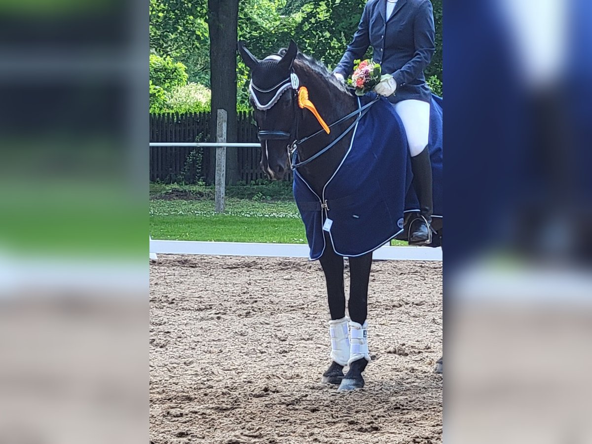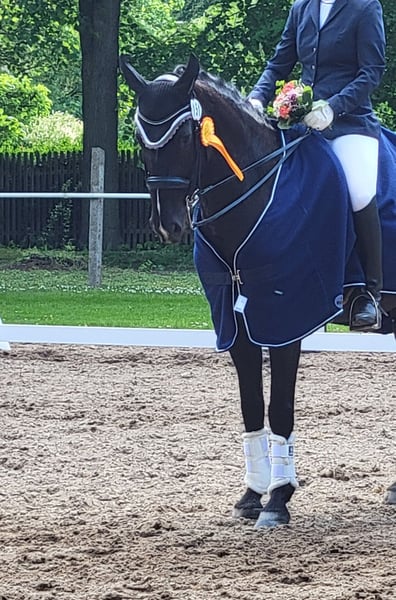 Aufgrund veränderter Lebensumstände muss ich mich leider entscheiden meinen 10-jährigen Wallach (Abstammung Fürsten-Look/Dancier) zu verkaufen. Er ist bei uns am Hof geboren, aufgewachsen und von mir als Amateurin mit Unterstützung mittlerweile bis zur Klasse S ausgebildet. So konnten wir gemeinsam Reitpferde- sowie Dressurpferdeprüfungen der Klasse A,L und M gewinnen, sowie erste Platzierungen und Siege in der Klasse M erreichen. Durch seine außerordentliche Arbeitsbereitschaft, seinen Lerneifer und besonders sein Talent fürs Piaffieren steckt in ihm alles, was ein GrandPrix-Pferd so mitbringen muss. In fördernden Händen ist das für ihn sicher kein großer Schritt mehr. Er ist 1,65m groß und würde sich aufgrund seines menschenbezogenen Wesens, seiner Fähigkeit sich auf seine_n Reiter_in einzustellen sowie seiner Rittigkeit auch gut als Junioren-/Junge Reiter-Pferd eignen. Neben seinen sportlichen Stärken ist er ein echter Kumpeltyp, der auch gerne und zuverlässig alleine und in der Gruppe ins Gelände geht. Er ist bisher nie ernsthaft krank oder verletzt gewesen, hat aber leichtes Asthma, was mit guter Raufutterqualität aber völlig unproblematisch ist und keine konditionellen Auswirkungen hat. Ich wünsche mir fördernde Hände für ihn, die seine Qualitäten zu schätzen wissen und ihn weiterhin liebe- und respektvoll behandeln. Kontaktaufnahme bitte telefonisch: 01575-4370270