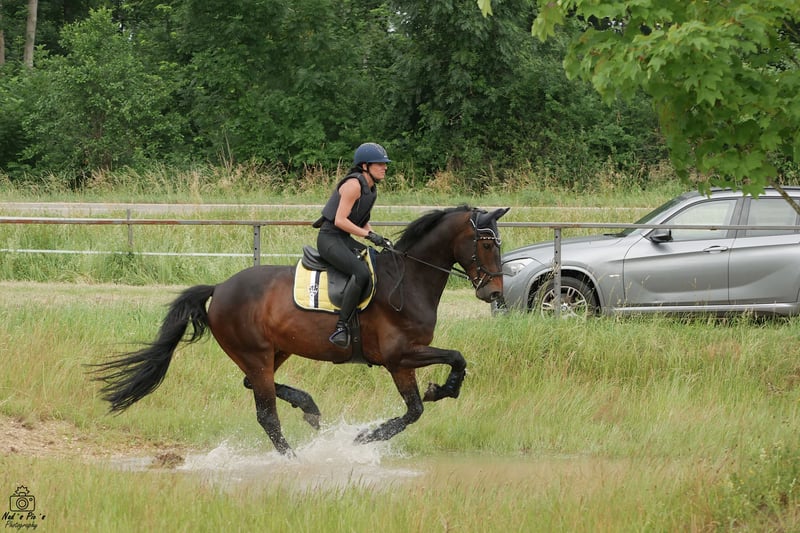I am only selling my Max if I find a suitable new home for him, as having two horses and two ponies is simply too much. He has a strong personality, and you should be able to assert yourself. Jumping at competitions is a bit challenging because he gets nervous on the warm-up area due to fear of the other horses. Otherwise, he is not spooky. It’s just the crowded warm-up area. He should be kept in a pasture stable, active stable, or a large paddock box with plenty of turnout. He tends to kick, which is how I bought him. In seven years with me, I’ve never had colic issues. He was once treated for suspected stomach problems. When I switched him to box stall housing over the winter, he lost a lot of weight. That doesn’t work for him. Please contact me by phone for more details.